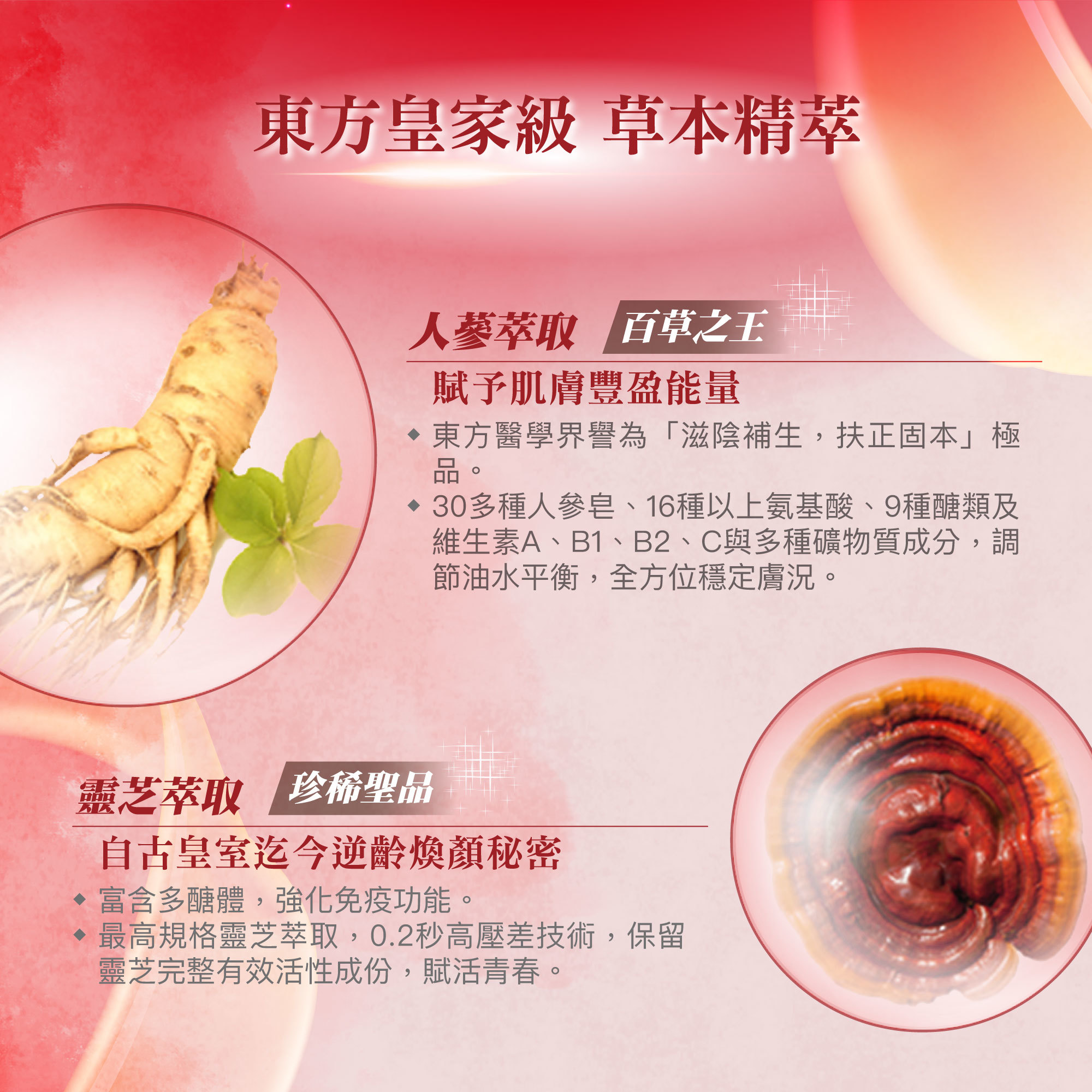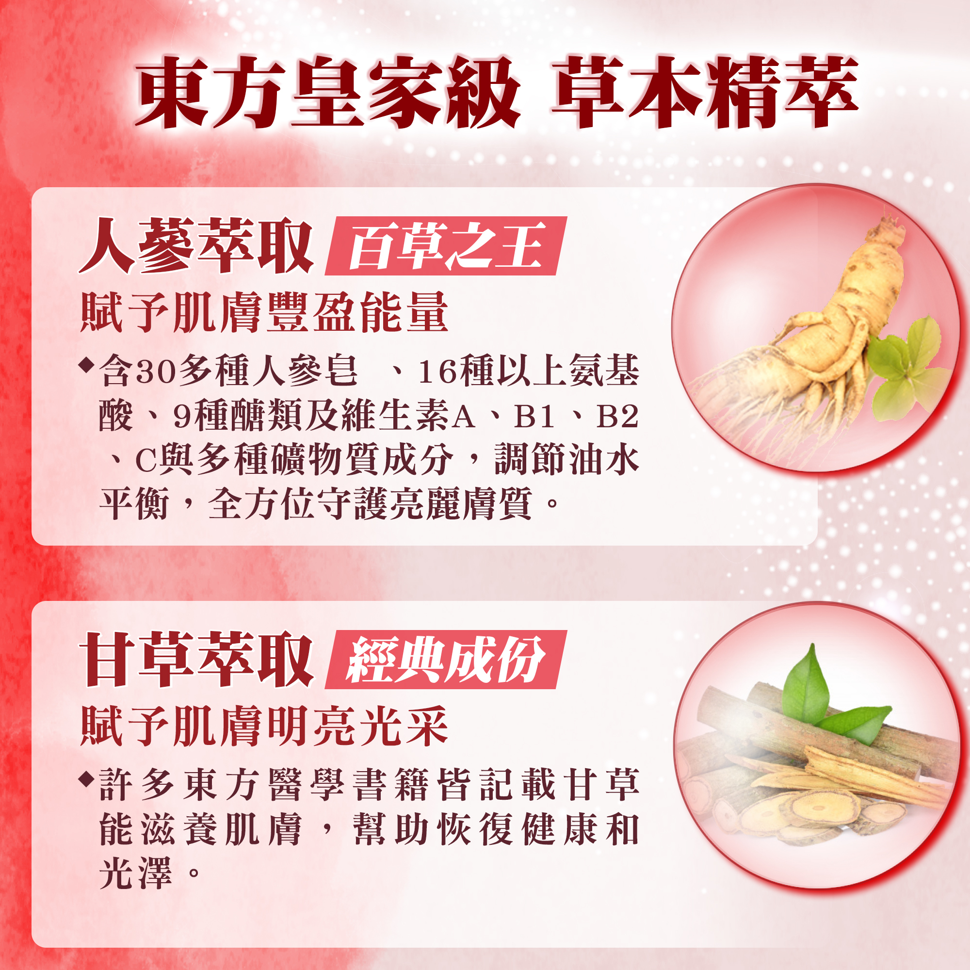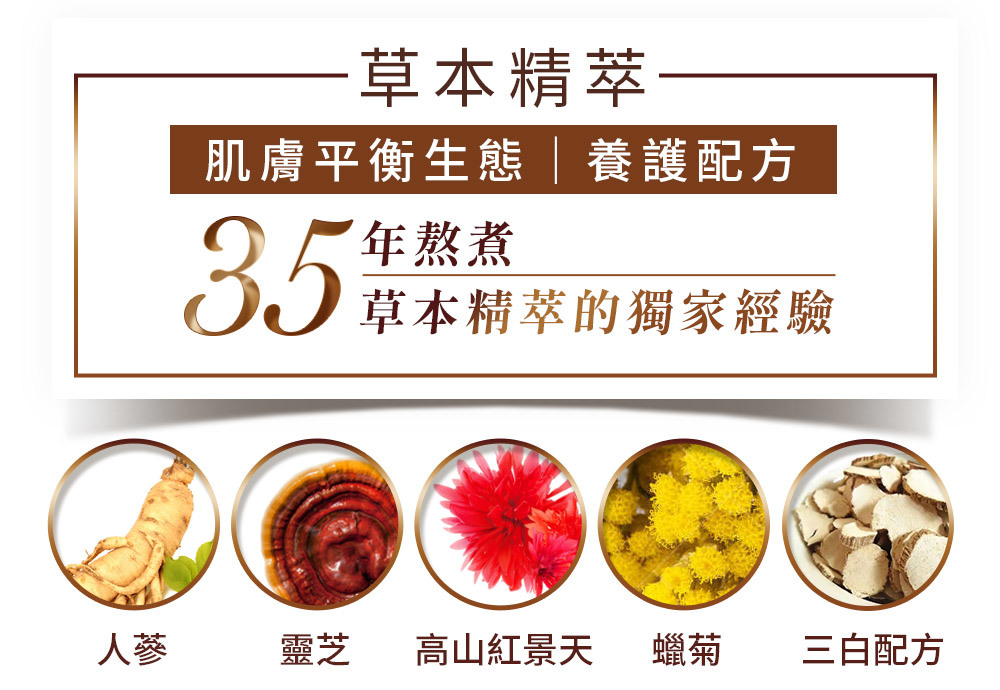 ★添加人蔘、靈芝、蠟菊...等珍貴草本精萃,賦予肌膚豐盈能量