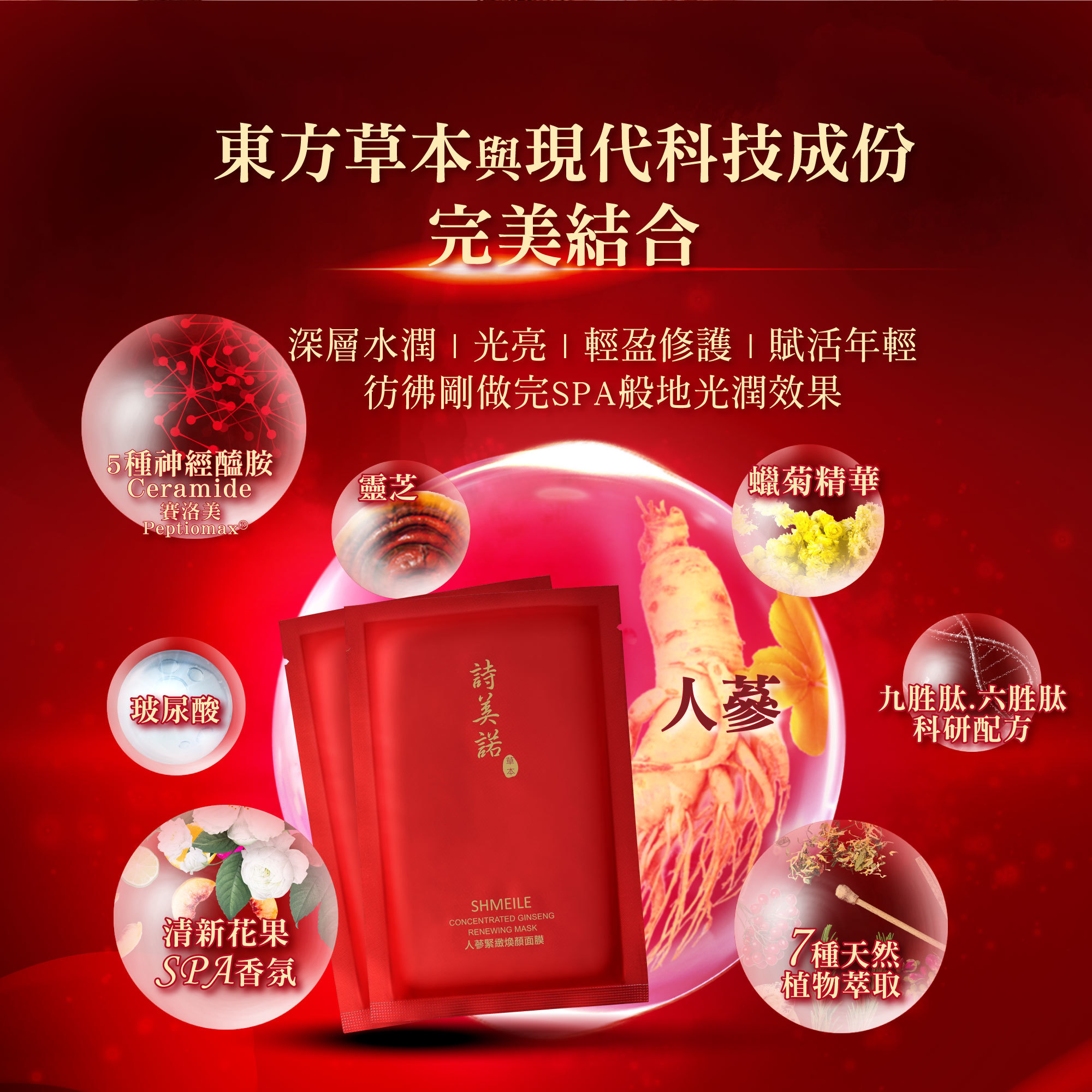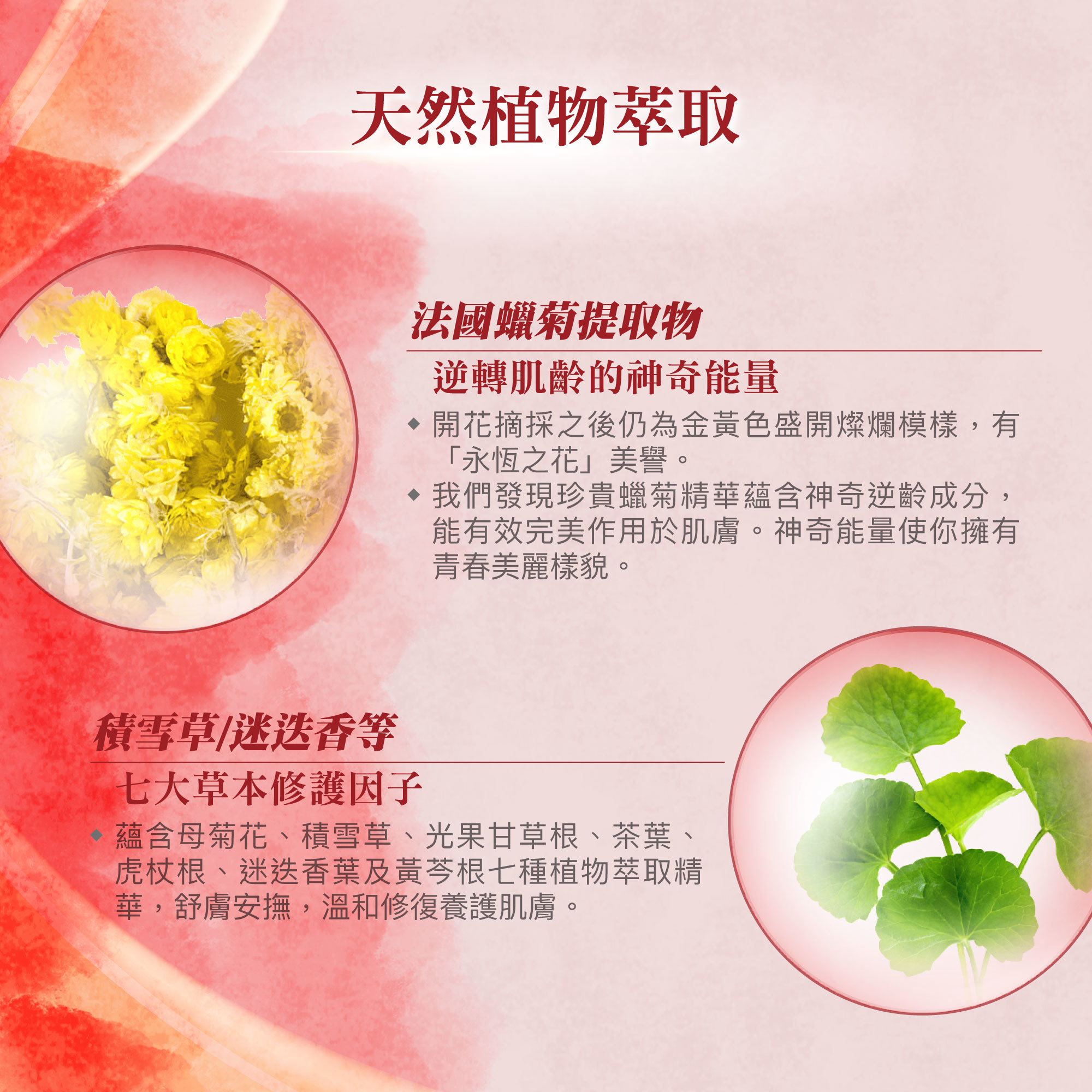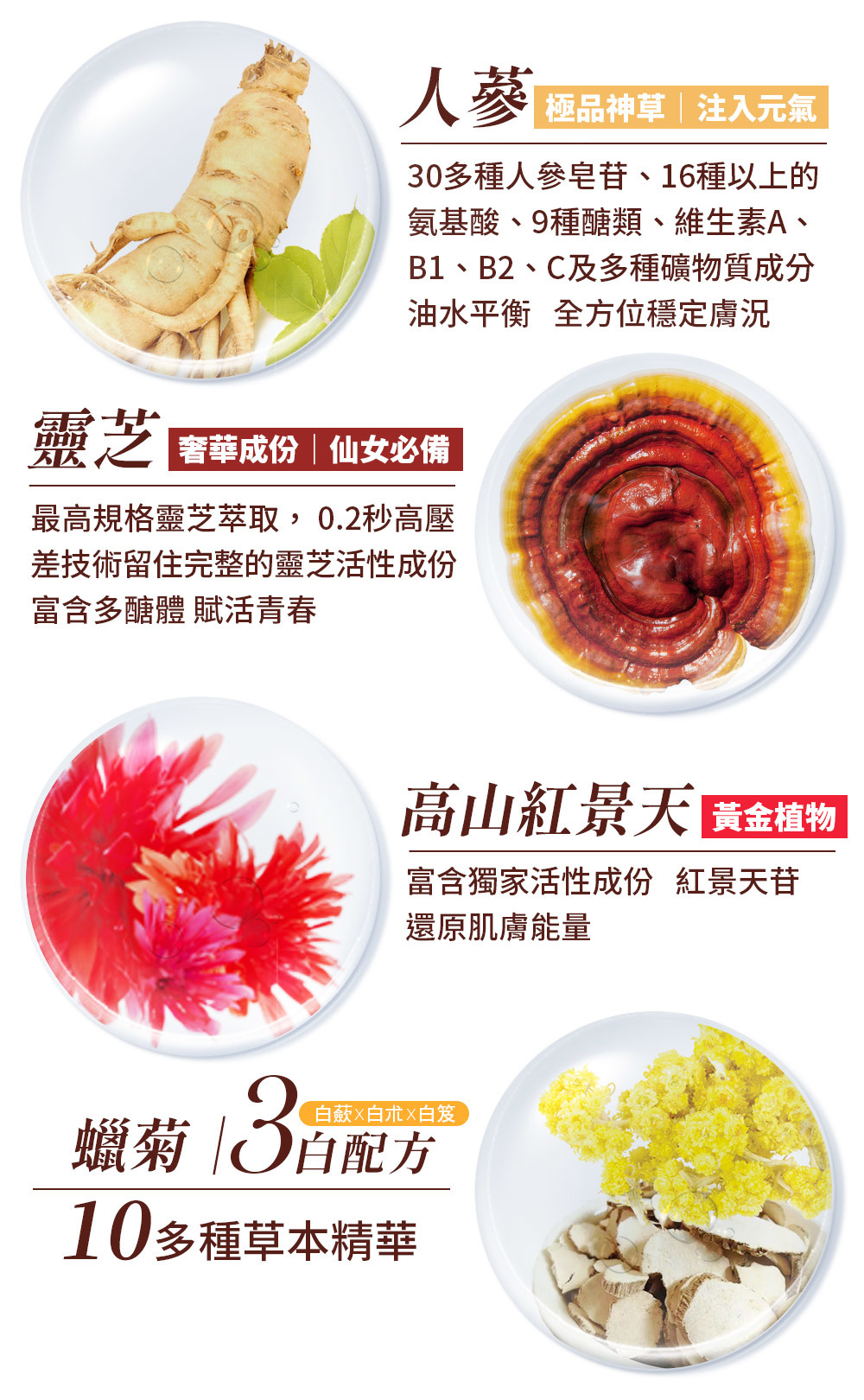 ★添加人蔘、靈芝、蠟菊...等珍貴草本精萃,賦予肌膚豐盈能量